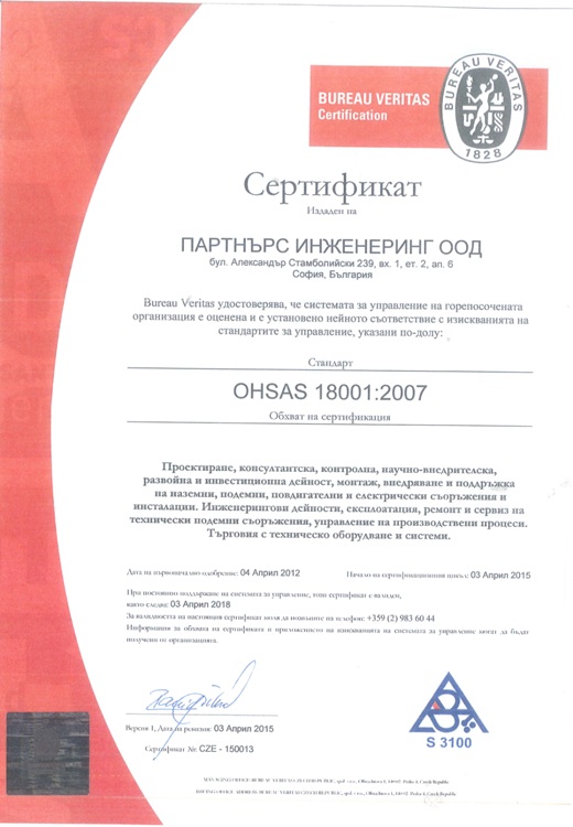 Дружеството е с внедрена система за управление на здравословни и безопасни условия на труд в съответствие с BS OHSAS 18001:2007 със сертификат, издаден от BUREAU VERITAS CETRIFICATION.