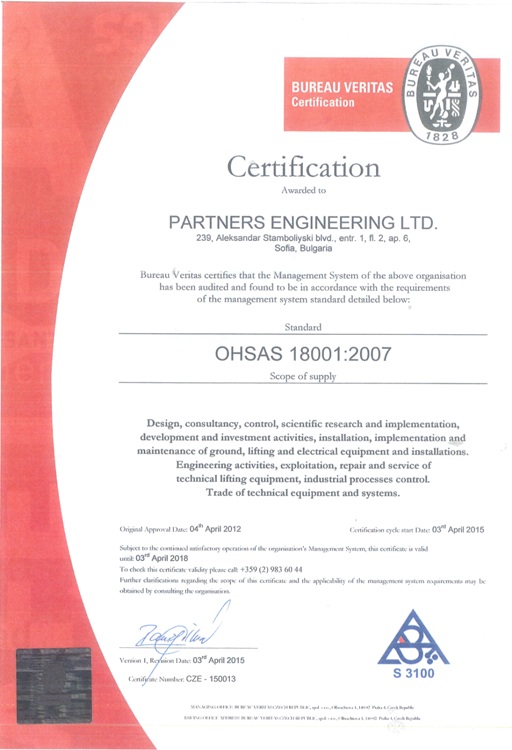 The company has implemented Occupational Health and Safety Assessment Series Standard BS OHSAS 18001:2007, certificate issued by BUREAU VERITAS CERTIFICATION.