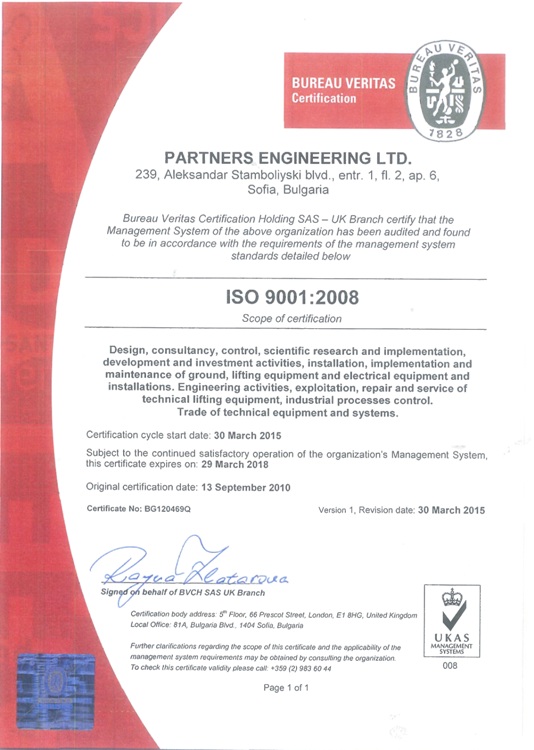 The company has implemented quality management system in accordance with ISO 9001:2008, certificate issued by BUREAU VERITAS CERTIFICATION.